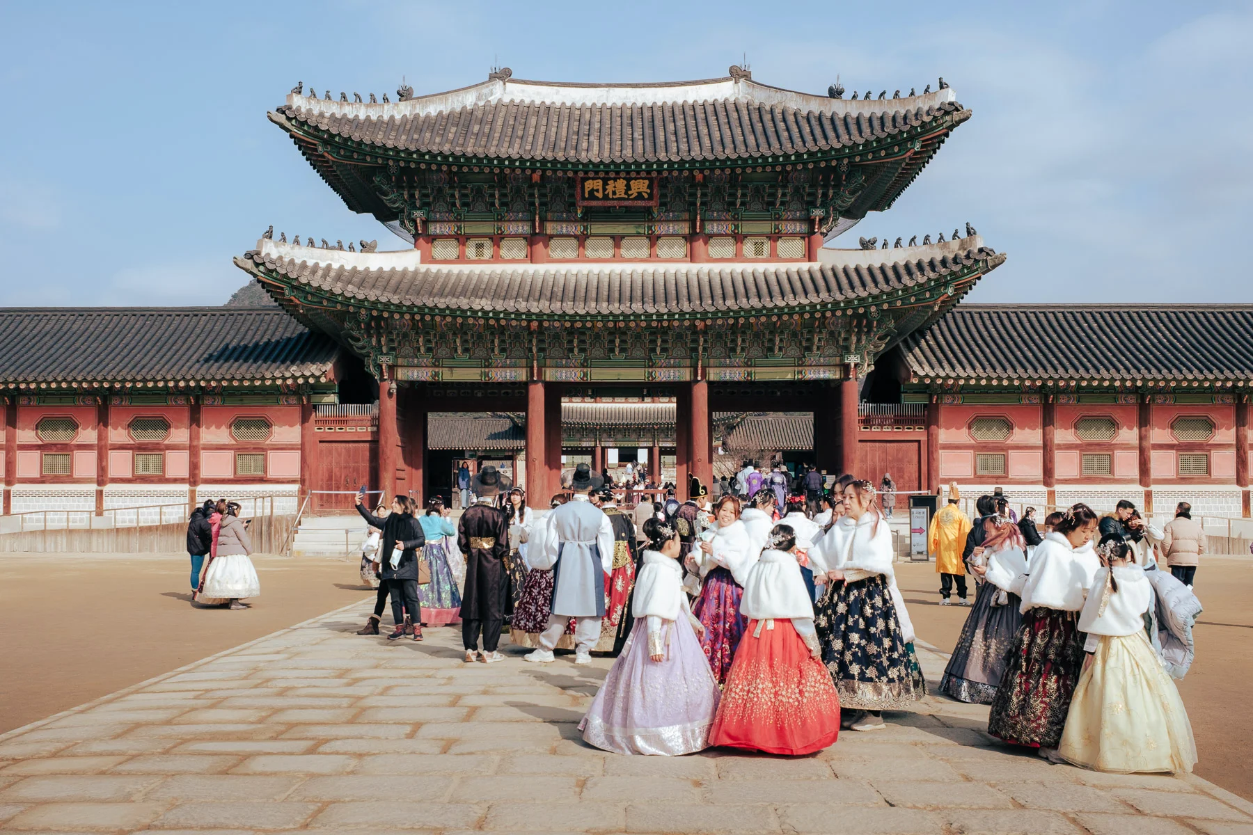 Construit en 1394, il est édifié selon les principes du feng shui. Il sera, à plusieurs reprises, détruit notamment lors de l’occupation japonaise puis reconstruit. Le site, d’une surface de 400 000 m2, est un joyau qui incarne des siècles de traditions et d’histoire. Afin de prolonger cette plongée dans l’histoire de la Corée du Sud, bon nombre de visiteurs portent le hanbok, la tenue traditionnelle coréenne. A noter que l’entrée est gratuite si vous vous habillez en hanbok.