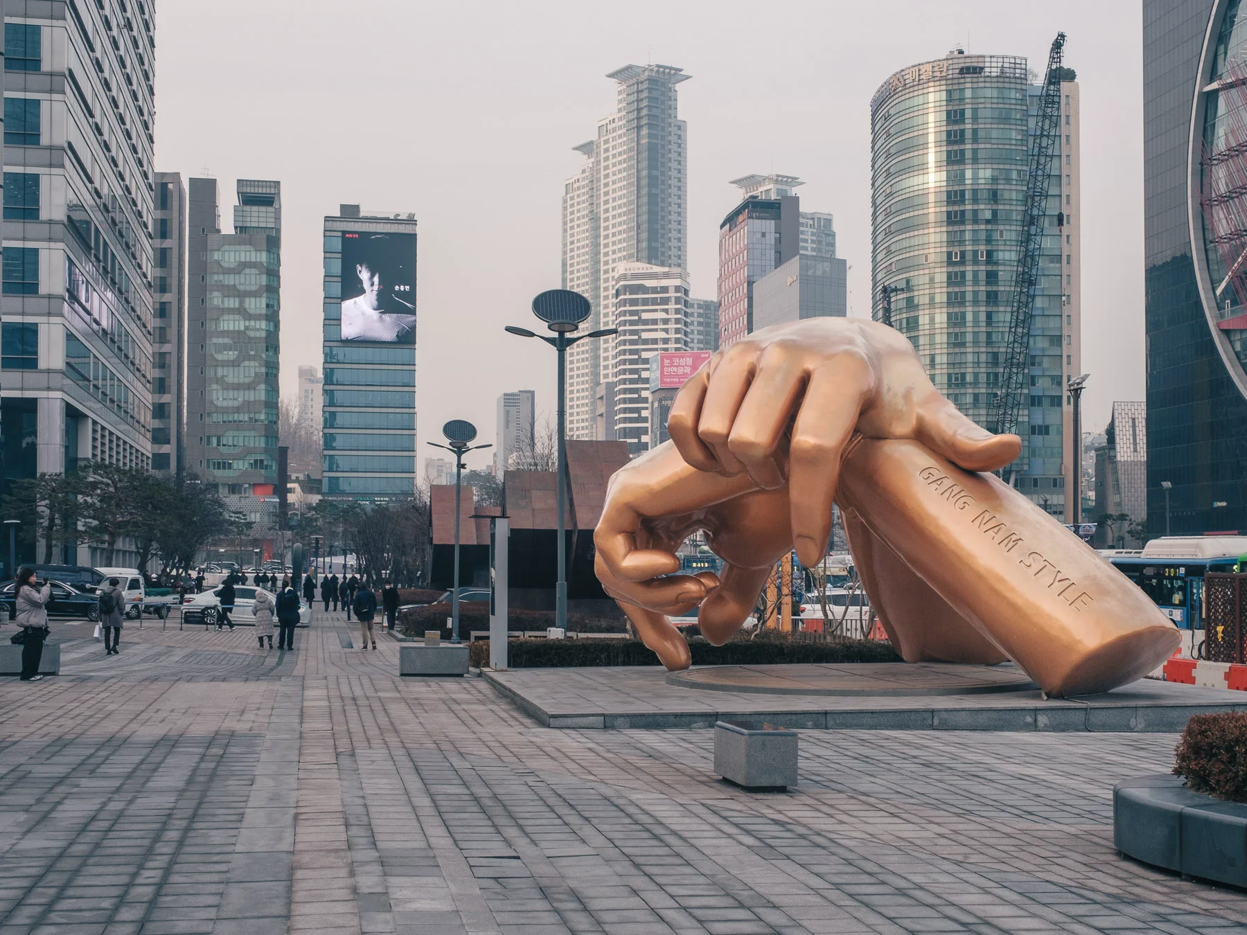 Il est considéré comme le quartier le plus riche et moderne de Séoul. Développé à partir des années 70, il se distingue des autres quartiers de Séoul par ses larges avenues, ses gratte-ciel et ses immeubles luxueux. Ce quartier est mondialement connu grâce au succès planétaire de la chanson « Gangnam Style » de Psy où il met en avant ce quartier chic et branché. Véritable icône de la Corée du Sud, vous retrouverez une statue de ses mains, lieu de passage obligatoire.