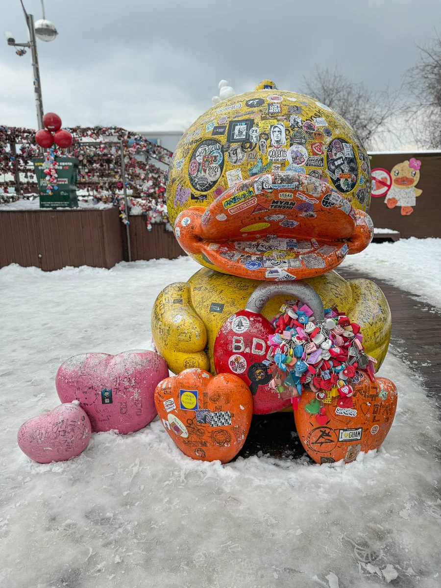 La N Seoul Tower offre une vue imprenable sur la ville. Haute de 236 mètres et située au sommet du Mont Namsan, elle est une attraction incontournable. Accessible à pied (montée assez raide) ou en téléphérique, ses plateformes à 360 degrés vous dévoileront un spectacle exceptionnel surtout au coucher du soleil. Je vous conseille également la visite du parc Namsan qui entoure la tour. Pour ma part, j’ai eu la chance de faire sa visite sous la neige ce qui renforce sa beauté et sa magie.