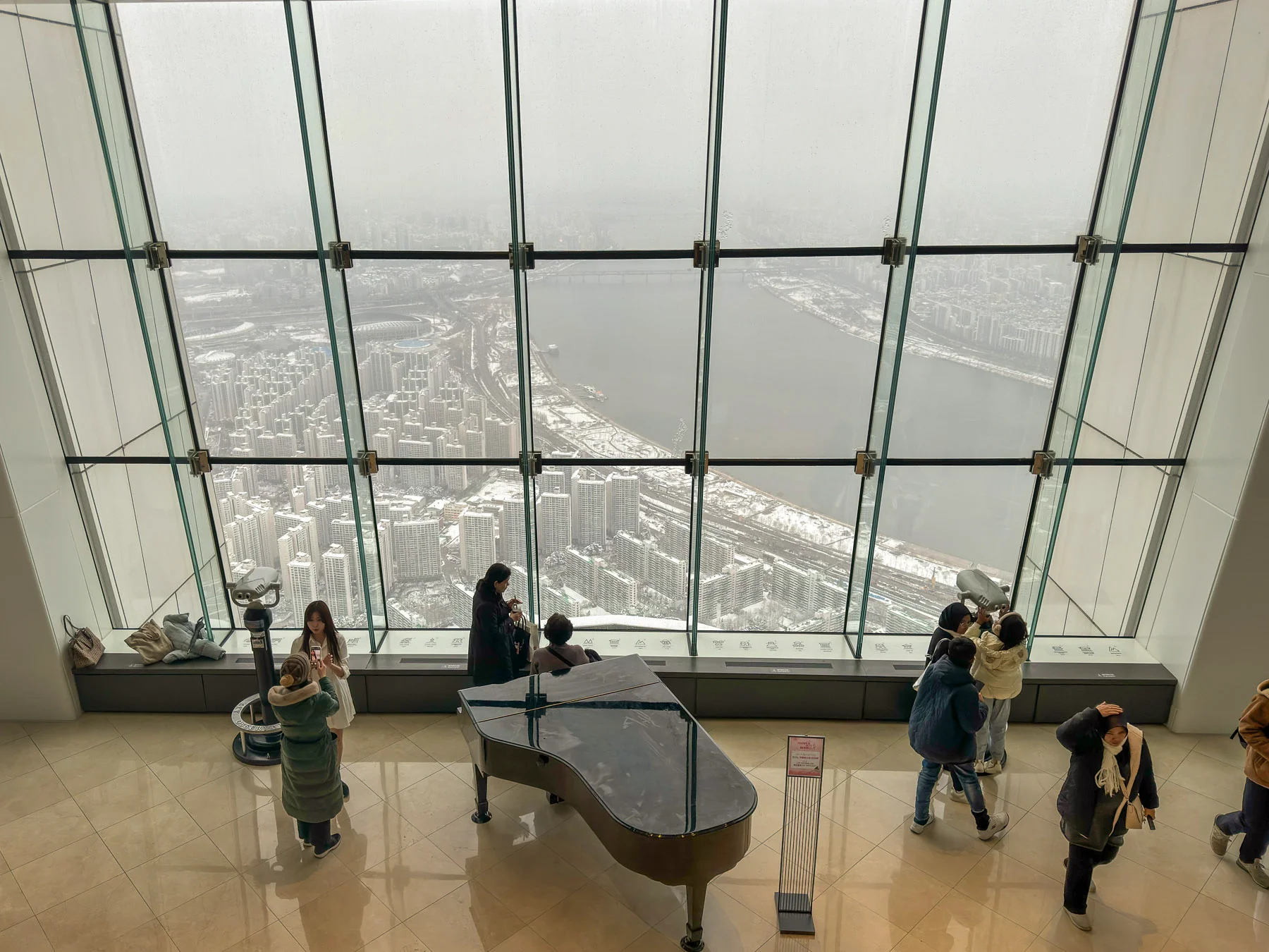 Plus haut gratte-ciel de Corée du Sud, la Lotte World Tower compte 123 étages abritant bureaux, résidences de luxe et un hôtel. Son célèbre observatoire, Séoul Sky, culmine à 500 mètres d’altitude et permet d’avoir une vue à 360° de la capitale. Le Sky Deck propose une expérience vertigineuse avec sa plateforme en verre perchée à 478 mètres d’altitude.